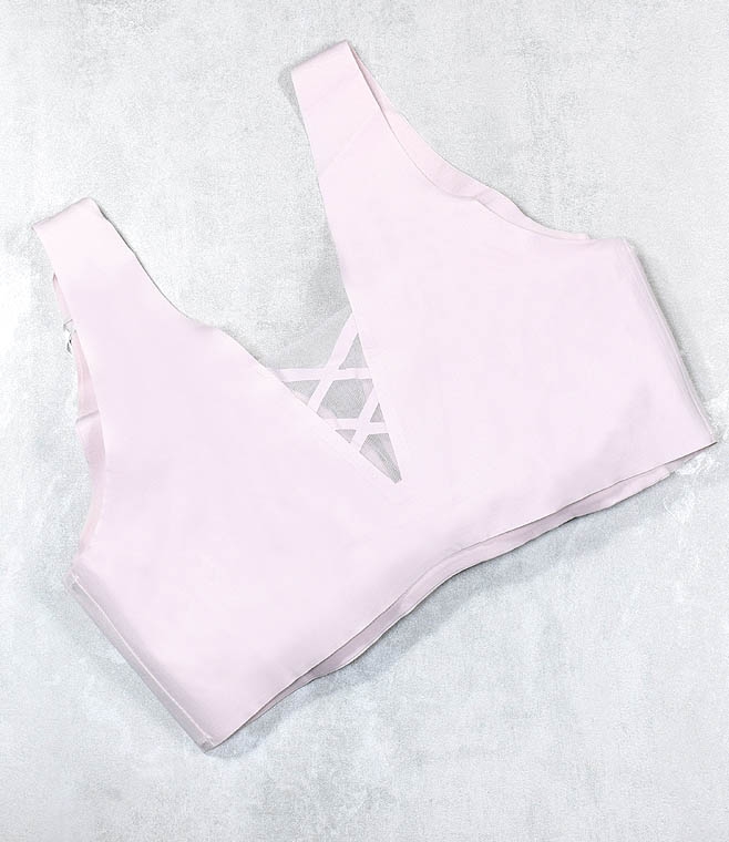 Przód biustonosza wyróżnia głębszy dekolt wykończony delikatną siateczką, która dodaje mu subtelnej elegancji. Tył zachwyca tiulową wstawką oraz dekoracyjnymi krzyżykami, tworząc nowoczesny i kobiecy design. Ramiączka są nieodpinane i pozbawione regulacji, co zapewnia stabilne podtrzymanie.