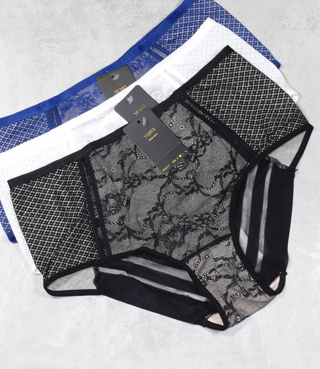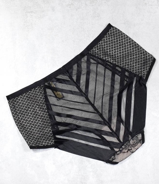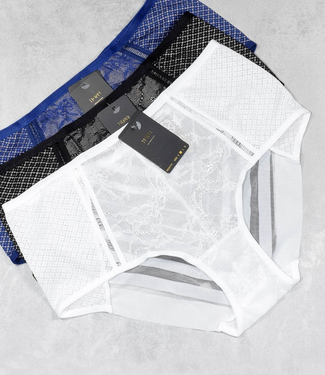 Przód modelu zdobiony jest dekoracyjnymi siateczkami oraz subtelną koronką, które nadają bieliźnie elegancji i zmysłowości. Tył wykonano z transparentnej siateczki, uzupełnionej ozdobnymi paseczkami, co tworzy nowoczesny i niezwykle kobiecy wygląd.
